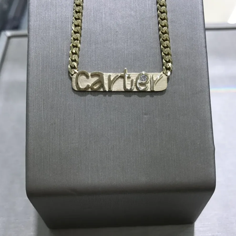 18K Gold Pendant, Approx 1 Inch 2.9 Mm Curb Chain, 14K Gold Chain. 16″